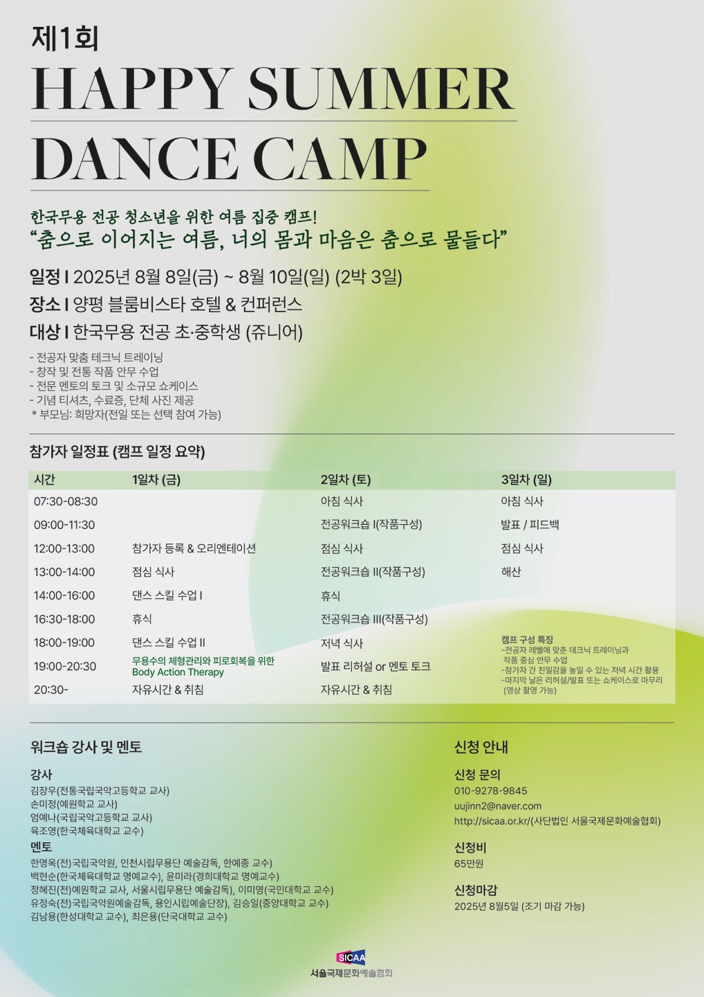 (사)서울국제문화예술협회 05372 서울특별시 강동구 양재대로 1384, 3층 2호 (둔촌동) / 고유번호 351-82-00388 이사장 백현순